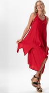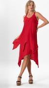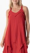 Askılı V Yaka Leyla Asimetrik Kesim Midi Boy Müslin Yazlık Elbise Kırmızı Krmz