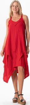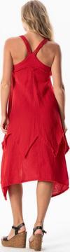 Eliş Şile Bezi Askılı V Yaka Leyla Asimetrik Kesim Midi Boy Müslin Yazlık Elbise Kırmızı Krmz