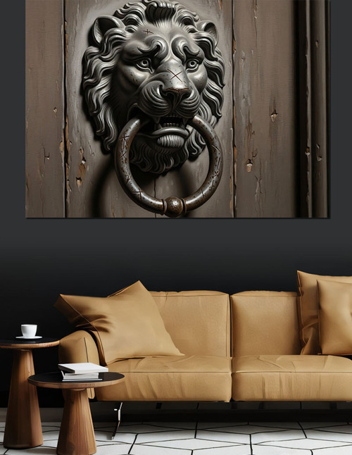 Aslan Başlı Kapı Tokmağı Dekoratif Kanvas - Mdf Ahşap Tablo