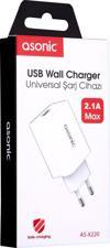 Asonic As-X220 2.1A Beyaz Ev Şarj Adaptörü 8680096091889