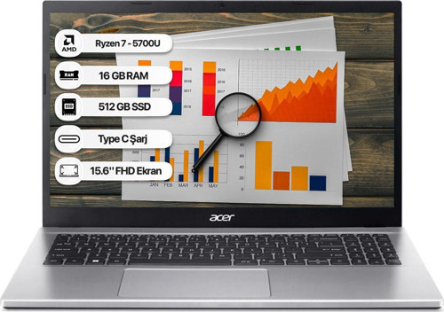 Acer Aspire 3 A315-44P Ryzen 7 5700U 16 GB 512 GB SSD Freedos 15.6" FHD 60 Hz Taşınabilir Bilgisayar NX.KSJEY.002