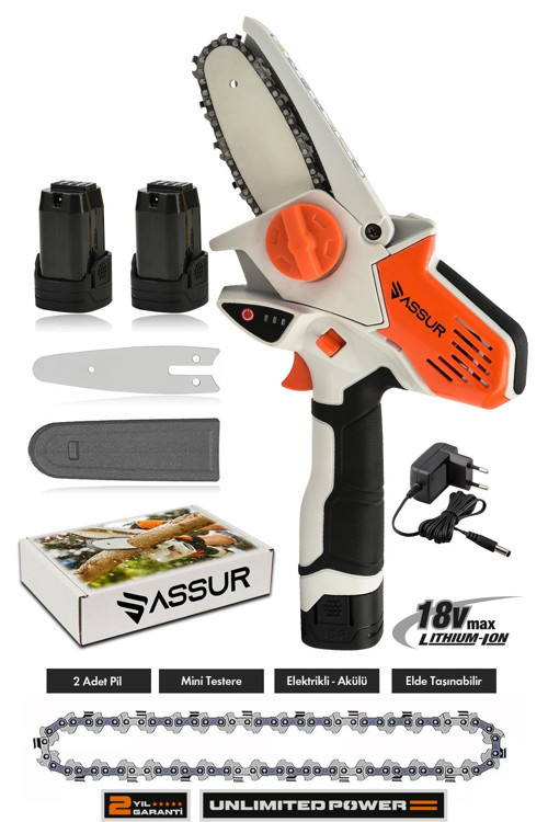 ASSUR Budama Testere, 18V XR Li-Ion güçlü bataryası ve kömürlü motoru ile ağaç budama işlemlerini kolaylıkla gerçekleştirmenizi sağlar. 15 cm pala uzunluğu ve 14 dişli zinciri ile keskin ve etkili kesimler yapabilirsiniz. 1500mAh çift aküsü ve 4 pilli dahili bataryası, uzun süreli kullanımlarda bile kesintisiz performans sağlar. 60 dakikalık hızlı şarj süresi, işlerinize hız kazandırır. Metal dişli şanzımanı, dayanıklılık ve uzun ömürlü kullanım sunar. 2 kg'lık hafif tasarımı, kullanımı kolay ve pratiktir. 2 yıl garanti süresi, ürünün kalitesine ve dayanıklılığına olan güveni gösterir.