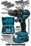 Güç : XR Lİ-İON 21V Akü : 2000mah (çift akü) Mandren : 13mm Motor : Kömürlü Dahili Batarya : 10 Pilli Şarj Dolum Süresi : 60 dk Metal Çift Şanzıman : Çelik Mandren Tork Devir : 18+3 Darbe Özellik : Darbeli Hız : 0-350/0-1350r/min Delme kapasite : Metal(25mm)Ahşap(45mm) Sıkma / Açma : Yum.(30Nm)Sert(40Nm) Uç Seti : Var Aydınlatma : Led Vites : 2 Vitesli Ürün ağırlığı : 2 kg Garanti Süresi : 2 Yıl
