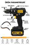 Bu akülü darbeli matkap, güçlü 21V XR Li-Ion bataryası ve kömürlü motoru ile zorlu delme ve vidalama işlemlerini kolaylıkla gerçekleştirmenizi sağlar. 13mm çelik mandren, dayanıklılık ve güvenilir sıkma sağlar. Darbeli özelliği, daha sert malzemelerde bile etkili delme performansı sunar. 2000mAh çift aküsü ve 10 pilli dahili bataryası, uzun süreli kullanımlarda bile kesintisiz performans sağlar. 60 dakikalık hızlı şarj süresi ve 2 kg'lık hafif tasarımı, kullanımı kolay ve pratiktir. Metal çift şanzımanı ve 2 yıl garanti süresi, ürünün dayanıklılığına ve kalitesine olan güveni gösterir.