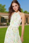 Ersefa Astarlı Şifon Halter Yaka Kuşaklı Midi Elbise Yazlık Rahat Konforlu Kesim Günlük Kullanım İçin