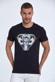 Voltaj Aster Baskılı Erkek Tişört Lacivert