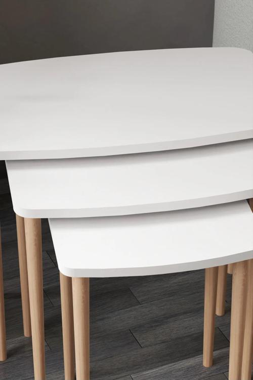 Evnalia Astor Çam Zigon Sehpa Dikdörtgen 3'lü Set İç İçe Geçebilen Ahşap Ayaklı Çam Desen Yüzey 60Gx37Dx52Y
