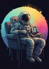 Karizmart Astronot Oturuyor Desenli Ahşap Tablo