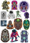 Reysa Tasarım Astronot Stikcer Set-4 12 Parça Telefon, Tablet, Defter, Laptop Sticker