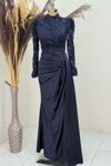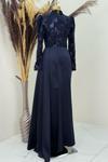 Bersu Önü Pul Boncuk İşlemeli Tesettür Abiye Lacivert - Image 1