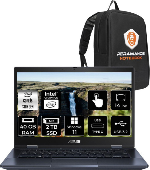 ASUS Expertbook B3 Flip i5 1335U 40GB RAM 2TB SSD 14" FHD W11P Dokunmatik Bilgisayar & PER4 ÇANTA