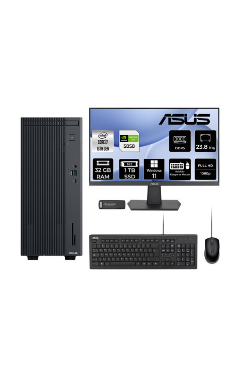 Asus ExpertCenter P500 i7 13620H 32GB 1TB SSD RTX5050/8GB W11P Masaüstü Bilgisayar + 23.8" Monitör