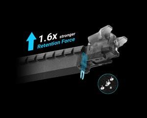 SafeSlot Core, ASUS'a özel PCIe yuvasıdır. Anakarta özel bir kanca ile tutturulmuş, güçlendirilmiş bir tasarım barındıran SafeSlot Core, standart genişletme yuvalarından 1,6 kat daha fazla eğilme, 1,3 kat daha fazla kırılma direnci sağlar.