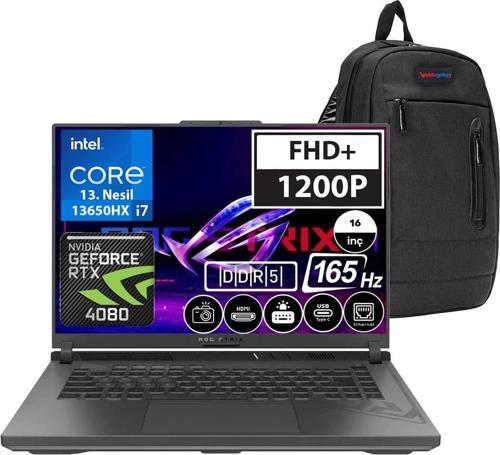 ASUS Rog Strix G16 G614JZ-N3038-W I7 13650HX 16GB Ram 1TB SSD 12GB RTX4080 16" Fhd+ 165Hz Freedos N3038-01 + Zetta Çanta