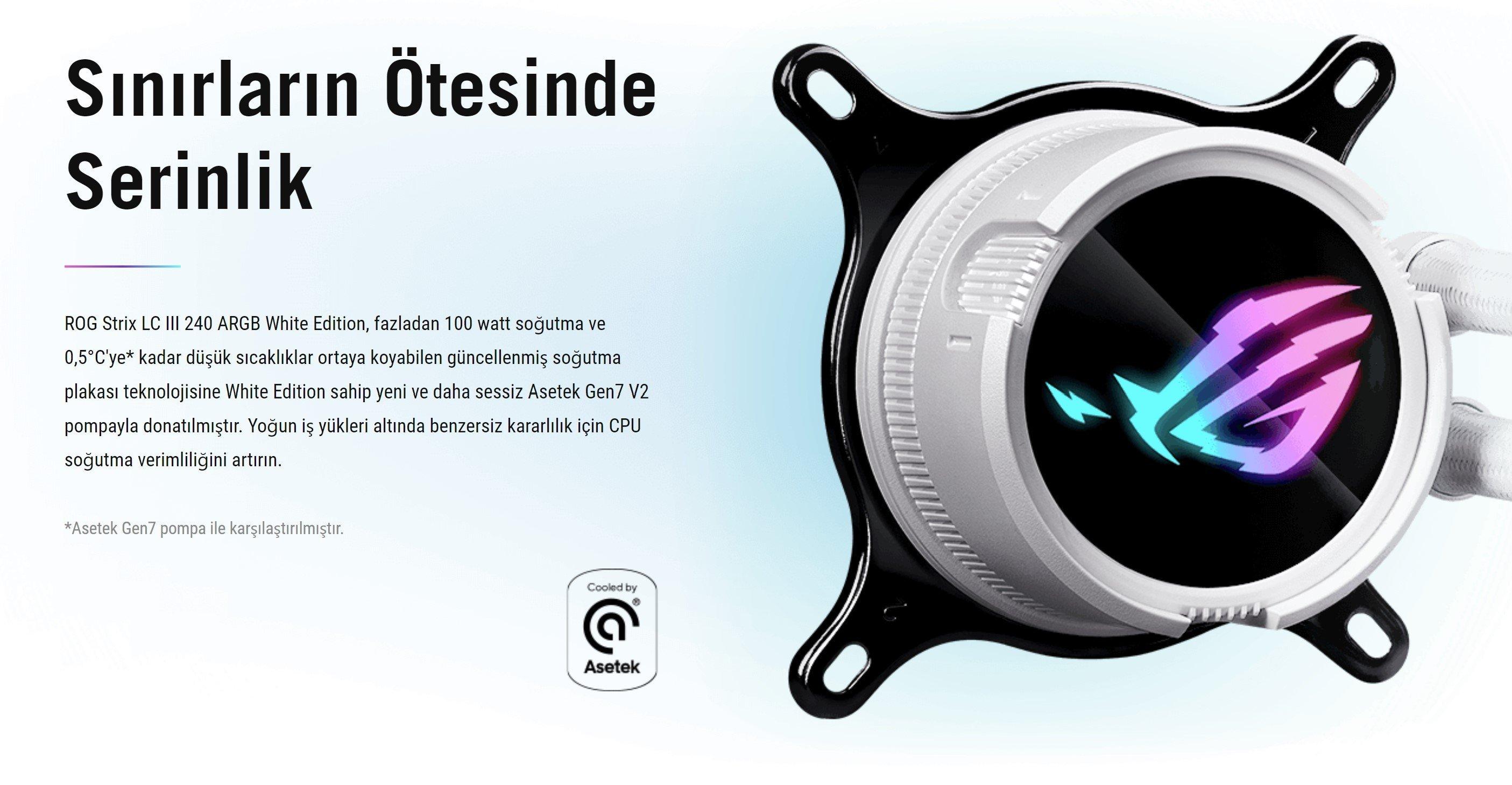 Asus ROG Strix LC III 240 ARGB White Edition 240mm İşlemci Sıvı Soğutucusu Beyaz 90RC00S2-M0UAY0