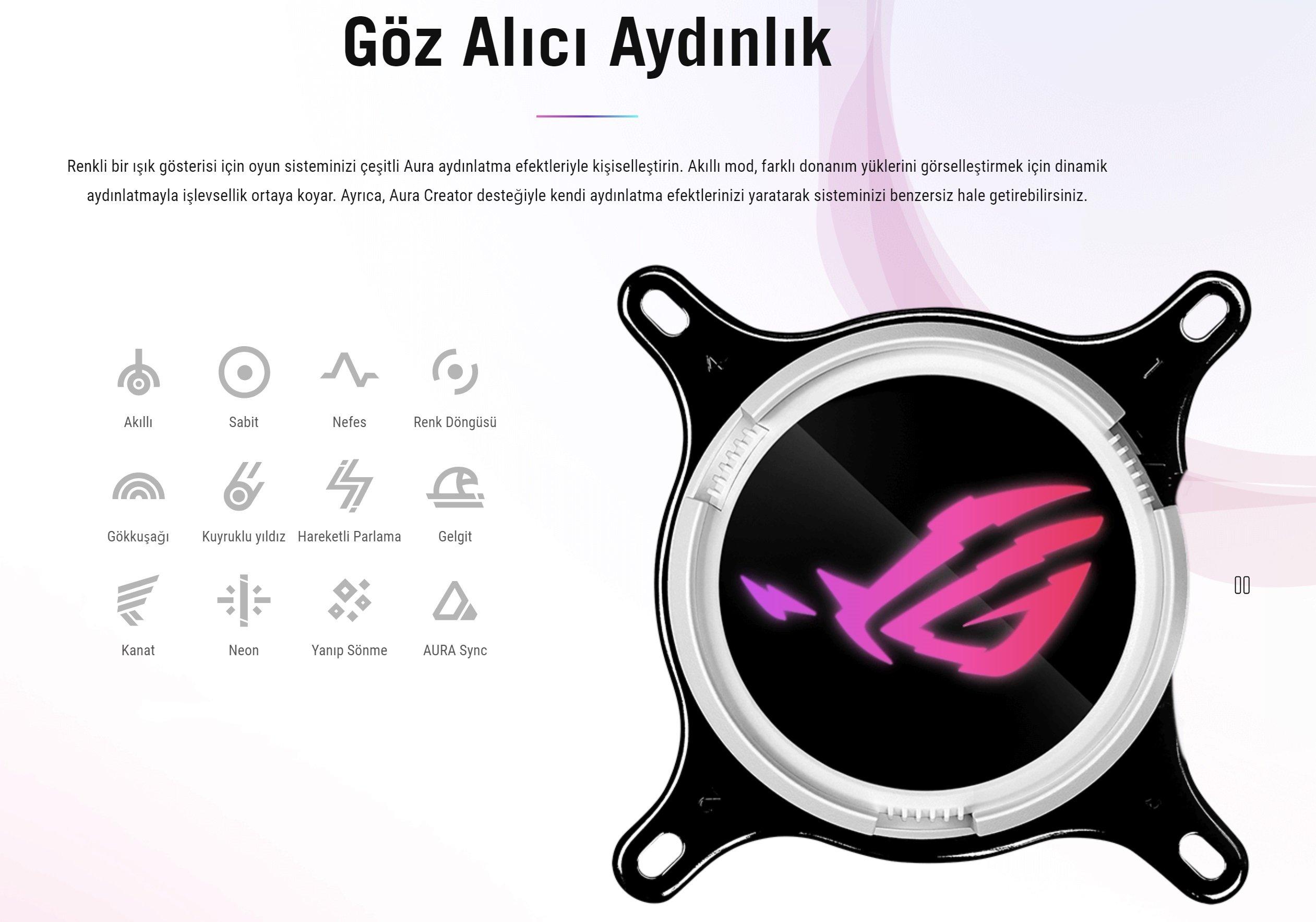360° döndürülebilen ROG logosu ve 10+ özel Aura aydınlatma efekleri ile yeni su bloğu.