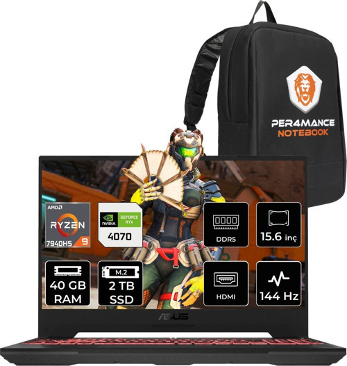 Asus TUF Gaming A15 R9 7940HS 40GB 2TB SSD RTX4070/8GB 144HZ 15.6" FHD FDOS LP042 & PER4 ÇANTA