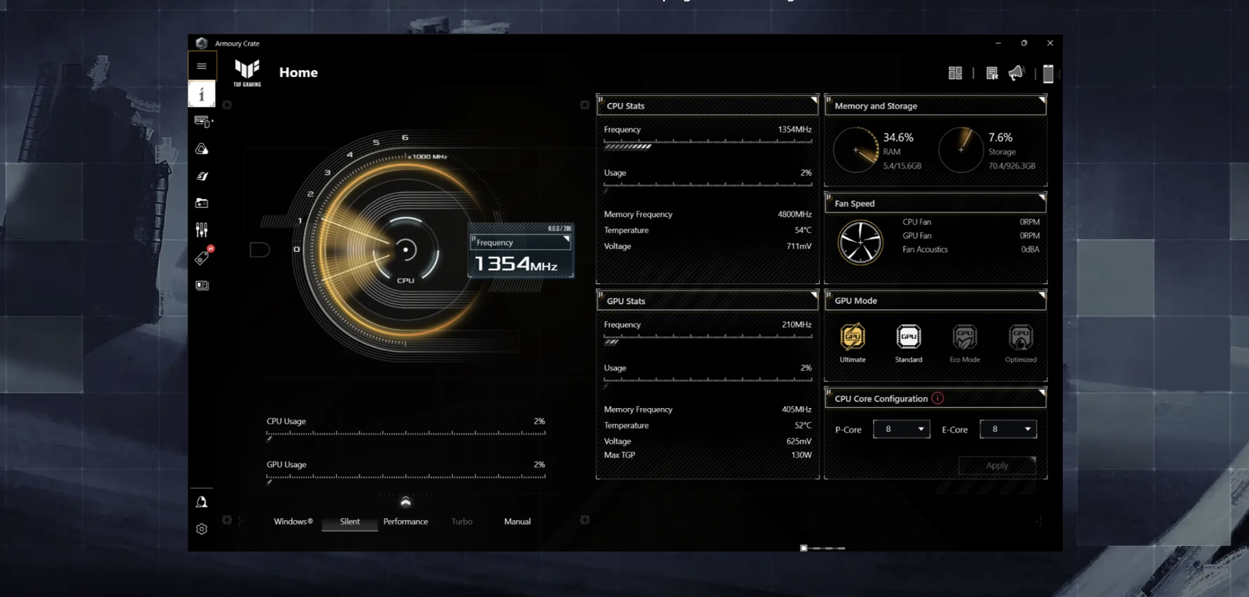 2024 TUF Gaming F16, RGB aydınlatma ve fan kontrolü gibi özelliklerle donatılmış Armoury Crate desteği ile geliyor. Tek bir tuşla özelleştirilmiş senaryo profilleri oluşturabilir ve makine hangi programların çalıştığını algıladığında yüksek performans ile yüksek verimlilik modları arasında akıllıca geçiş yapmasını sağlayabilirsiniz.