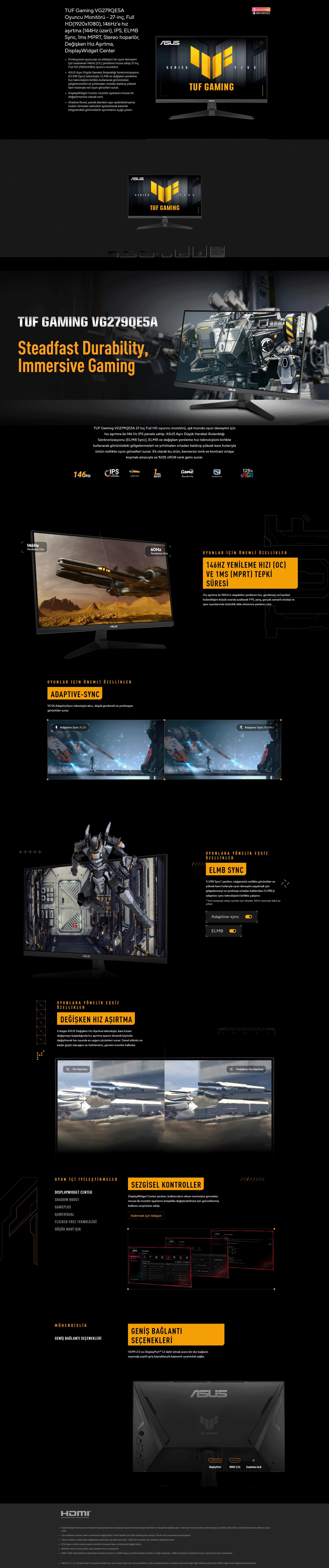 Asus TUF Gaming VG279QE5A 27" 1 ms Full HD IPS 146 Hz Oyuncu Monitörü