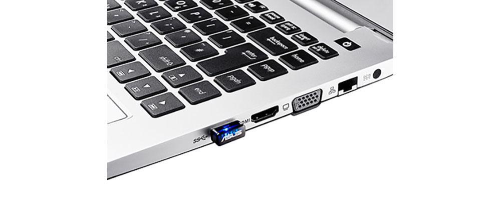 USB-N10, ince bir taşıma çantasının içindeyken bile dizüstü bilgisayara güvenli ve sağlam bir biçimde takılı kalabilmesi için kompakt ve dayanıklı olarak tasarlandı.