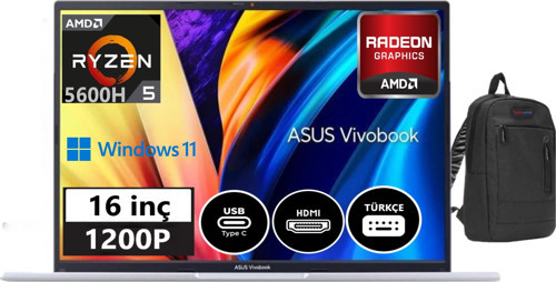ASUS Vivobook 16X 5.nesil Ryzen 5 5600H 24GB 512GB SSD 16" WINDOWS11HOME Wuxga Dizüstü Bilgisayar VM1603QA26 + Weblegelsin Çanta