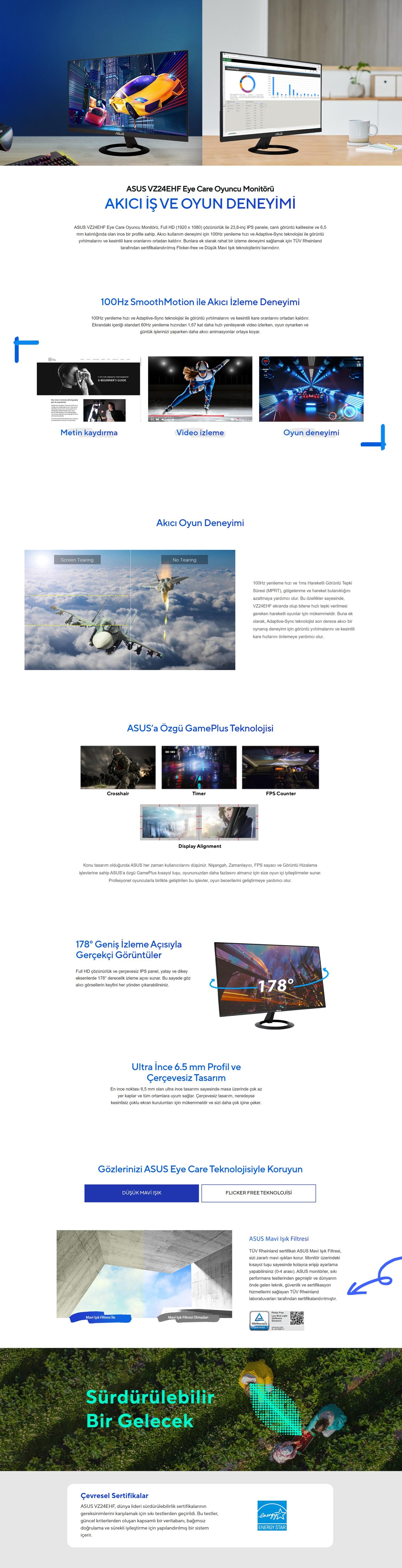 ASUS VZ24EHF Eye Care Oyuncu Monitörü – 24-inç (izlenebilir 23,8-inç), IPS, Full HD, Çerçevesiz, 100Hz, Adaptive-Sync, 1ms MPRT, HDMI, Düşük Mavi Işık, Flicker Free, Duvar Montaj Özelliği