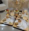 Tek parça halinde sunulan kahve, çay ve sunum tepsisi, minimalist tasarımıyla mutfak dekorasyonunuza şıklık katar