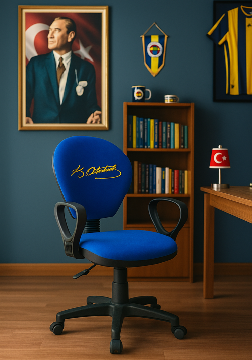 Çalışma alanlarınıza hem taraftar ruhu hem de konfor katın! Sarı lacivert renklerde tasarlanan, sırt kısmında özel Atatürk imzası baskısı bulunan bu çalışma koltuğu; çocuklar için ders çalışmayı keyifli hale getirirken aynı zamanda ofis ve bilgisayar kullanımı için de idealdir.