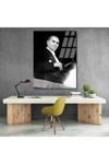 Atatürk Portresi Cam Tablo Şapka Tutan Atatürk Tablosu Ev Ofis DekoruDuvar Tablosu
