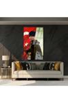 Artarilion Atatürk ve Türk Bayrağı Renkli Görsel Cam Duvar Tablosu Dikey Duvar Tablosu