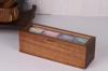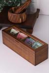 Atbyhome Atby Akasya Ahşap Kapaklı 4 Bölmeli Çay Kutusu 26,5x9x9 cm Şeffaf Kapaklı Çay ve Kahve Düzenleyici Kutu