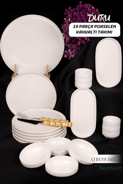 Atbyhome by Bambum Duru 19 Parça Porselen Kahvaltı Takımı | Sofralarda Saf ve Modern Zarafet