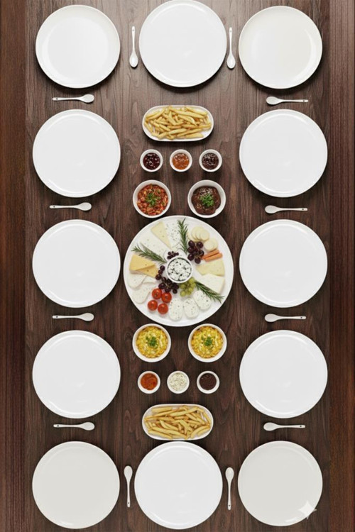 Fonksiyonellik: Farklı boyutlardaki tabakları, kaseleri ve özel porselen kaşıkları ile tüm kahvaltılık çeşitlerini en şık şekilde organize etmenize olanak tanır.