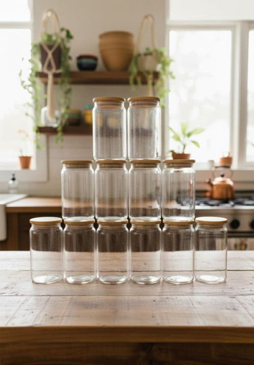 Mutfak düzeninde mükemmelliği hedefleyenler için nihai çözüm! Atbyhome Plus Serisi'nin bu 12 parçalık dev seti, kilerinizde veya mutfak dolaplarınızda baştan aşağı, profesyonel bir düzen kurmanızı sağlar. 1300 ml'lik geniş hacmi ve camın şeffaf zarafetini bambunun doğal sıcaklığıyla birleştiren bu set; bakliyatlardan makarnalara, kuruyemişlerden un ve şeker gibi temel gıdalara kadar tüm erzaklarınızı tek bir estetik dilde, hava almadan ve tazeliğini koruyarak saklar.