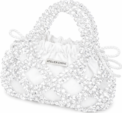 Budino Lattimo, Atelier Emine’in Crystal Gelato Couture koleksiyonunda yer alan; tek parça couture yaklaşımıyla ele alınmış, tekstil ve kristal işçiliğinin heykelsi bir birliktelik sunduğu top-handle pouch bag tasarımıdır.