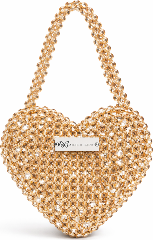 Atelier Emine’in Crystal Gelato Couture serisine ait Mielo Dolce, 8 mm optik sınıfı kristal boncuklar ve üst taşıma kulpu kullanılarak tamamen el işçiliğiyle üretilmiş heykelsi formda premium mini çanta modelidir.