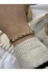 Zirkon taşlarla süslenmiş olan bu balıksırtı bileklik, her türlü kıyafetle mükemmel uyum sağlar.