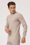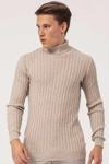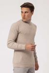 Erkek Balıkçı Yaka Slim Fit Fitilli Triko Kazak 6091288 Bej