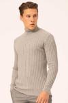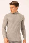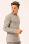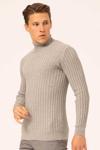 Detay: Uzun kol, balıkçı yaka, fitilli desen kazak;