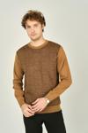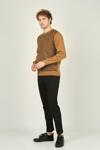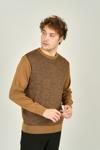 Erkek Bisiklet Yaka Desenli Yün Kazak 3035 Camel