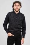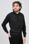 Detay: Düğmeli polo yaka, Cep detaylı, Önü desenli, Uzun kollu, Yün kazak;
