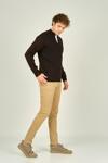 Trist Star Taba Erkek %100 Pamuklu Fermuarlı Dik Yaka Triko Hırka Trıst-1190 - Image 1