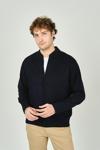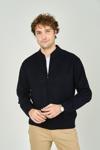 Ateş Triko Erkek Fermuarlı Çift Cepli Hakim Yaka Triko Yün Mont 9040 Lacivert