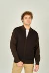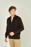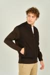 Detay: Fermuarlı, çift cepli, hakim yaka triko yün mont;