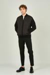 Detay: Fermuarlı, çift cepli, hakim yaka triko yün mont;