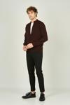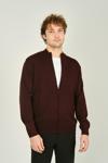 Erkek Fermuarlı Çift Cepli Hakim Yaka Yün Hırka 1021 K.Bordo