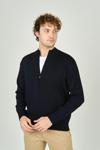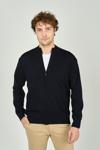Detay: Fermuarlı, uzun kollu, çift cepli, dik yaka yün hırka;