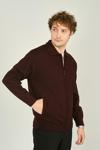 Erkek Fermuarlı Çift Cepli Triko Yün Mont 0103 Bordo