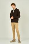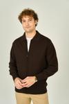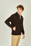 Detay: Fermuarlı, çift cepli, gömlek yaka, triko yün mont;