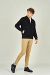 Detay: Fermuarlı, çift cepli, gömlek yaka, triko yün mont;
